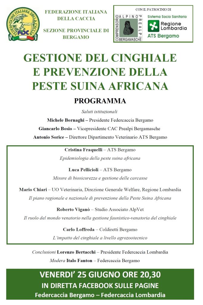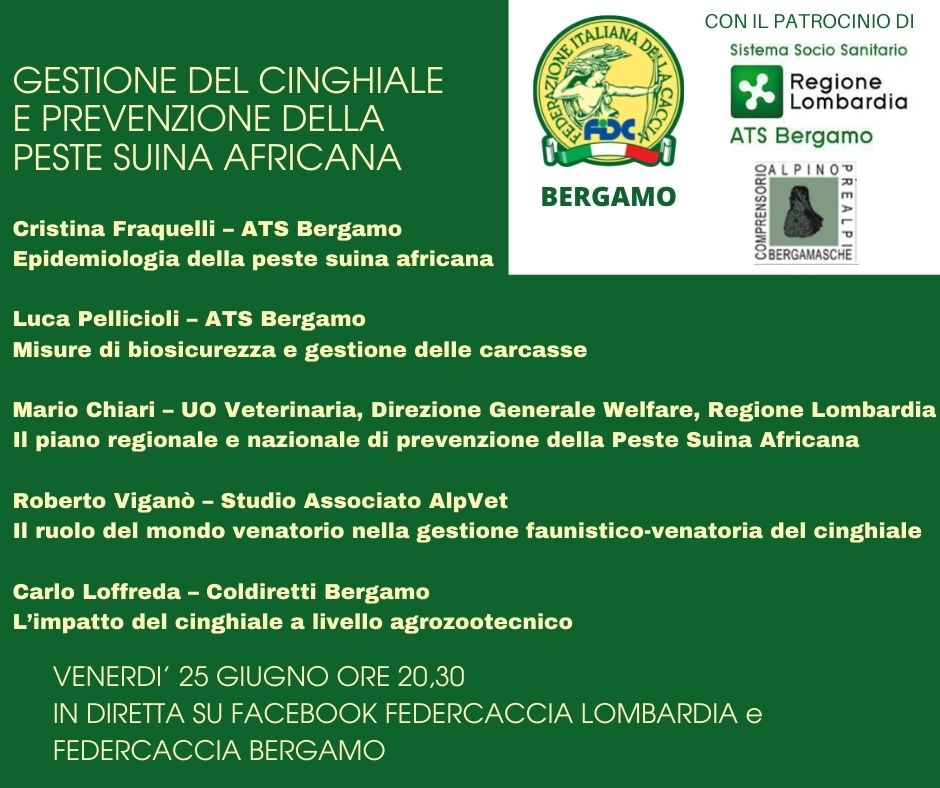 Gestione del cinghiale e prevenzione della peste suina: venerdì 25 giugno un convegno a cura di Fidc Bergamo