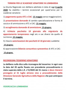 Home»Prorogati i termini per le scadenze venatorie in Lombardia»RINVIO SCADENZE VENATORIE 2020