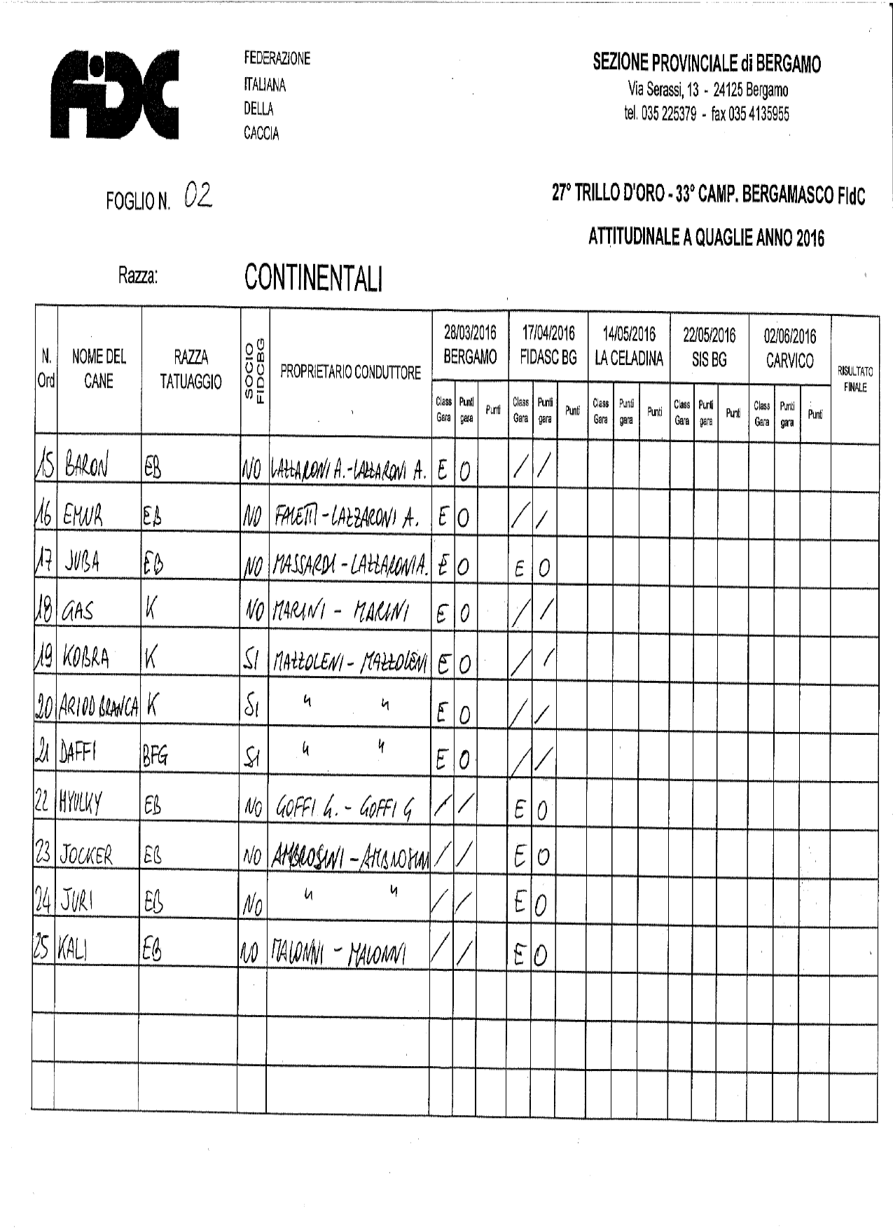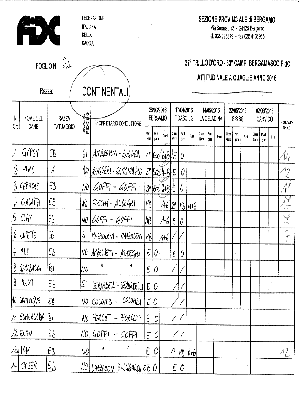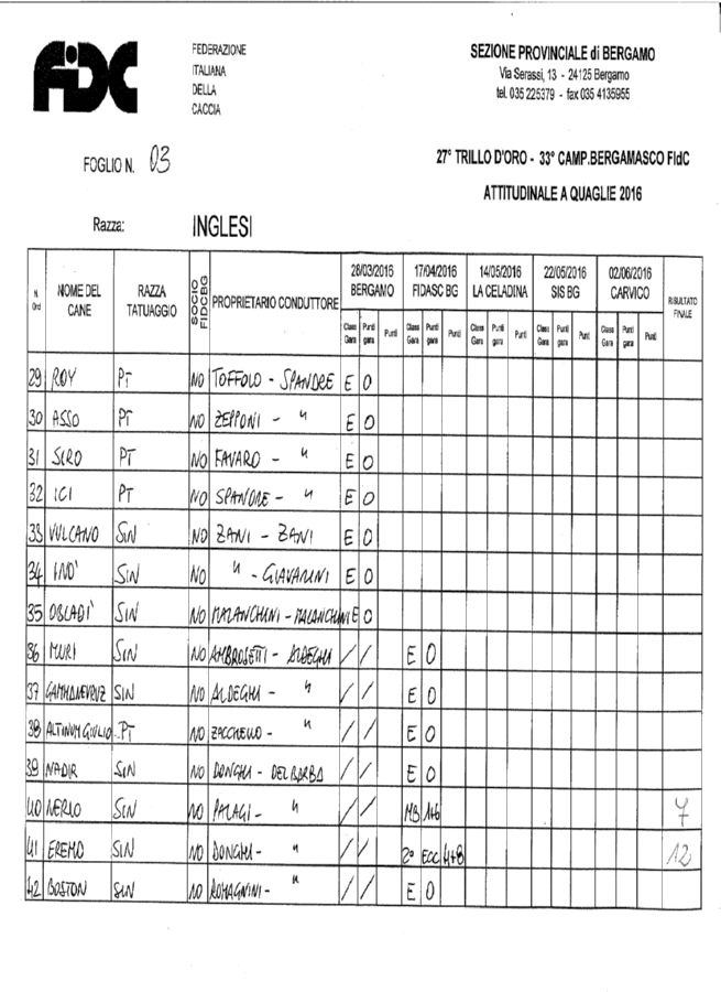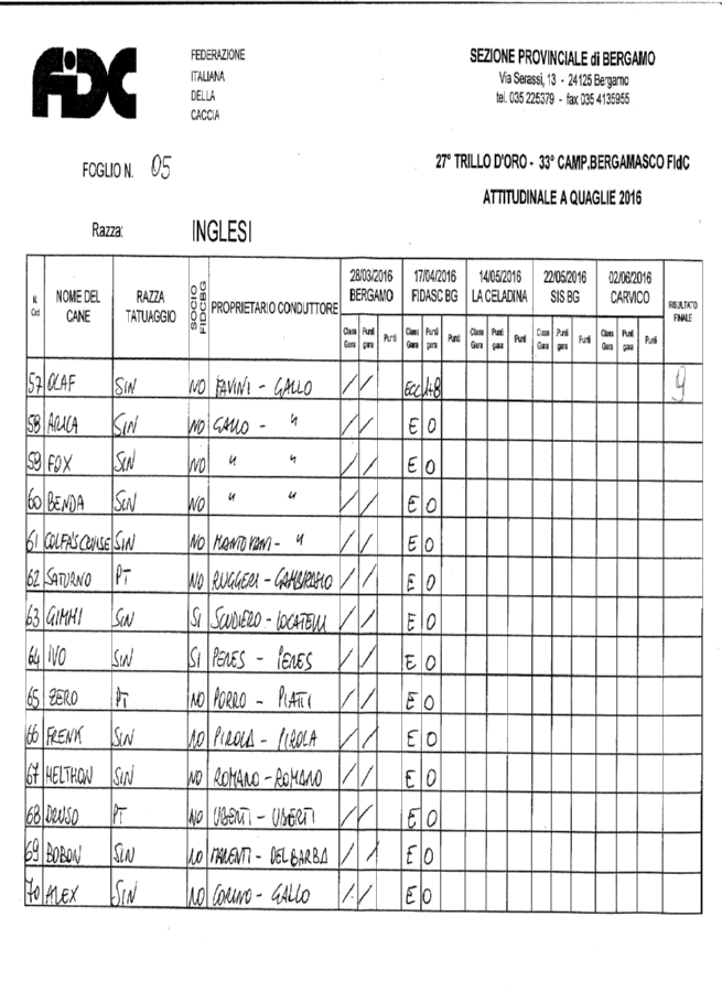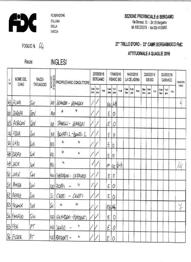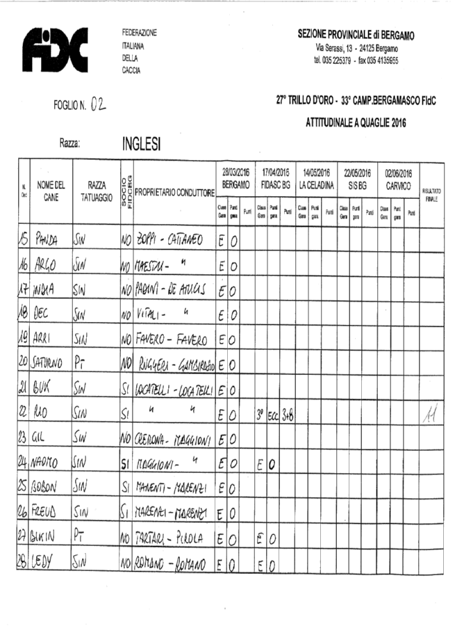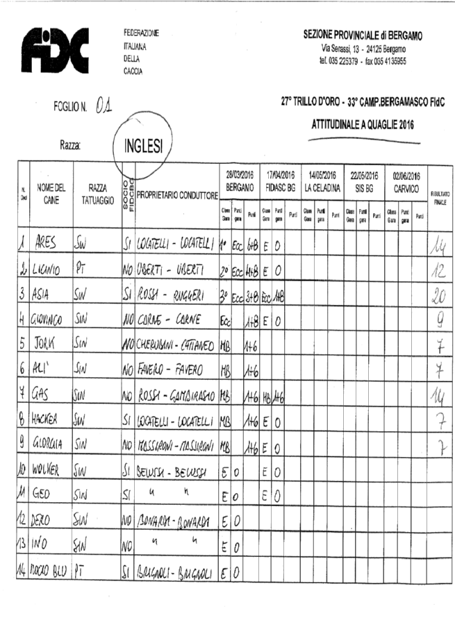 Scarica i risultati dell’ attitudinale a quaglie 2016 continentali