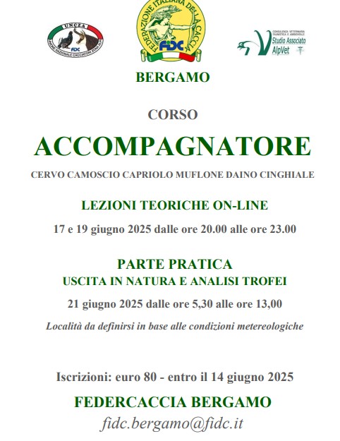 L’associazione organizza un corso intensivo dedicato all’accompagnamento nella caccia a cervo, camoscio, capriolo, muflone, daino e cinghiale.